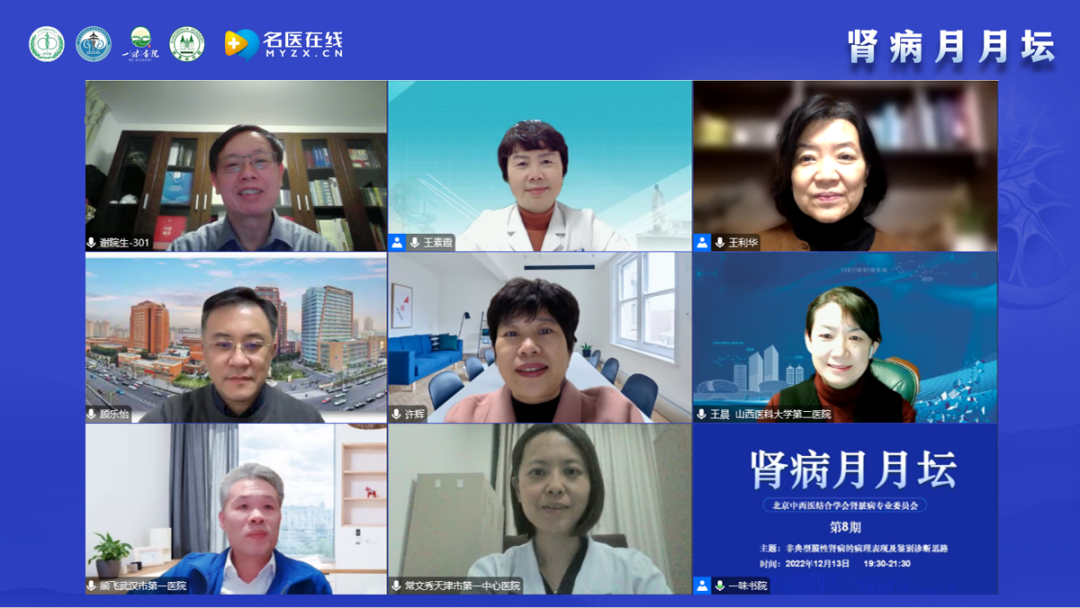 疫情可能影響大家相聚,但阻止不了學(xué)術(shù)交流,“腎病月月壇”第8期如期而至。謝教授代表北京中西醫(yī)結(jié)合學(xué)會(huì)腎臟病專業(yè)委員會(huì)對(duì)各位專家、各位同仁及各位朋友出席本期“腎病月月壇”表示熱烈的歡迎和衷心的感謝。