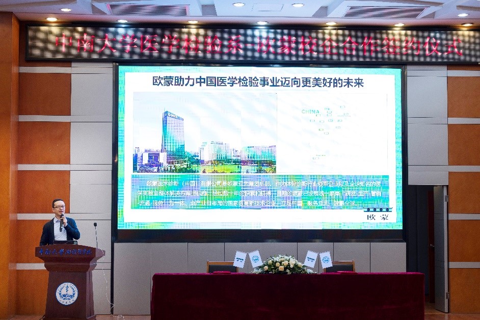 3月30日,歐蒙再次走進(jìn)中南大學(xué)湘雅醫(yī)學(xué)院,與醫(yī)學(xué)檢驗(yàn)系簽署新一輪校企戰(zhàn)略合作協(xié)議,此次合作是建立在雙方既往合作基礎(chǔ)上的進(jìn)一步深化與延展,校企雙方將從教學(xué)共建、獎(jiǎng)學(xué)金、創(chuàng)新實(shí)踐等多維度共同探索合作新模式,豐富教學(xué)資源提供,為持續(xù)推動(dòng)醫(yī)學(xué)事業(yè)高質(zhì)量發(fā)展培養(yǎng)人才。
