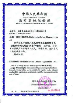 2011年3月,歐蒙公司生產(chǎn)的過敏原產(chǎn)品——吸入性及食物性過敏原特異性IgE抗體檢測試劑盒正式獲得國家食品藥品監(jiān)督管理局頒發(fā)的醫(yī)療器械注冊證。歐蒙過敏原產(chǎn)品具有如下優(yōu)勢: