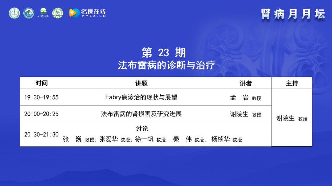 今天的主題是法布雷病的診斷與治療,邀請了在該領域有很深造詣的專家進行交流。